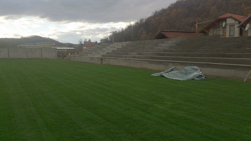 Engleska trava ma lošem zemljištu Engleska trava pre prvog košenja Panorama posle dva košenja
